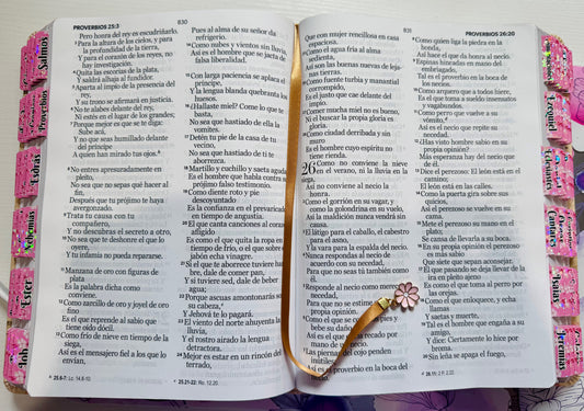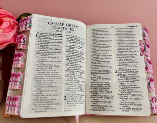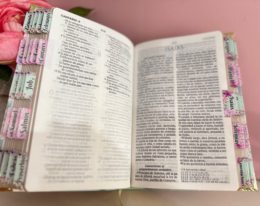 Biblia tamaño manual floral rosa y blanco